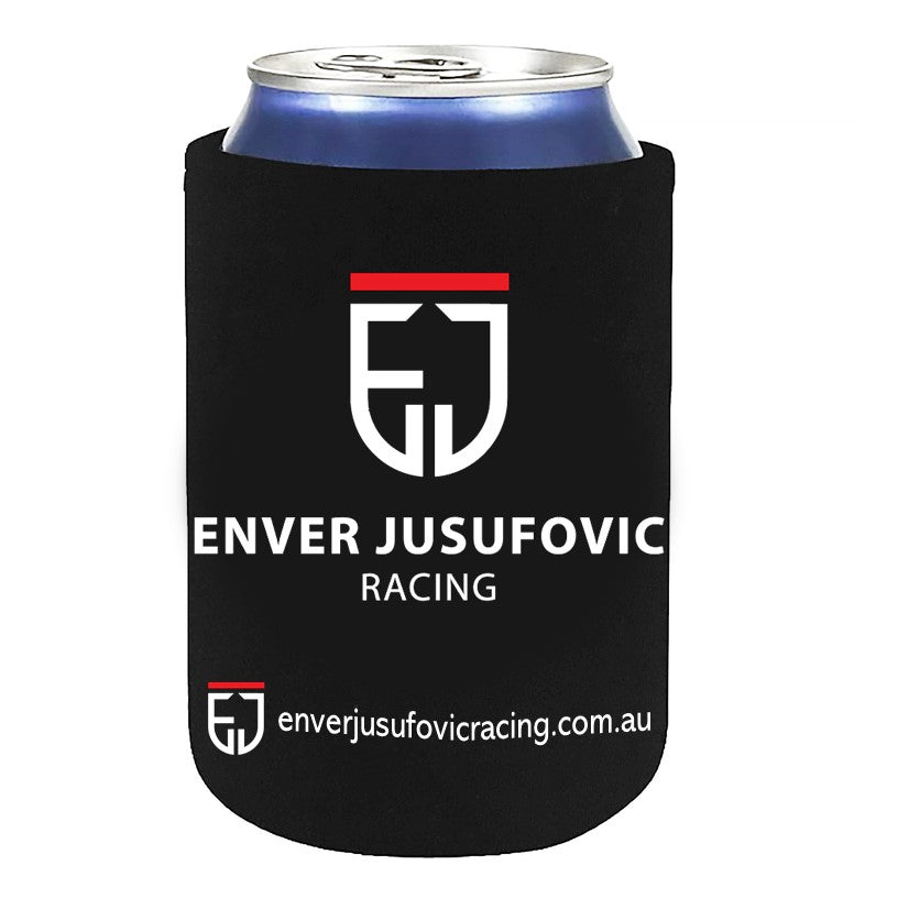 Ice the competition with your very own Enver Jusufovic Racing stubby cooler.