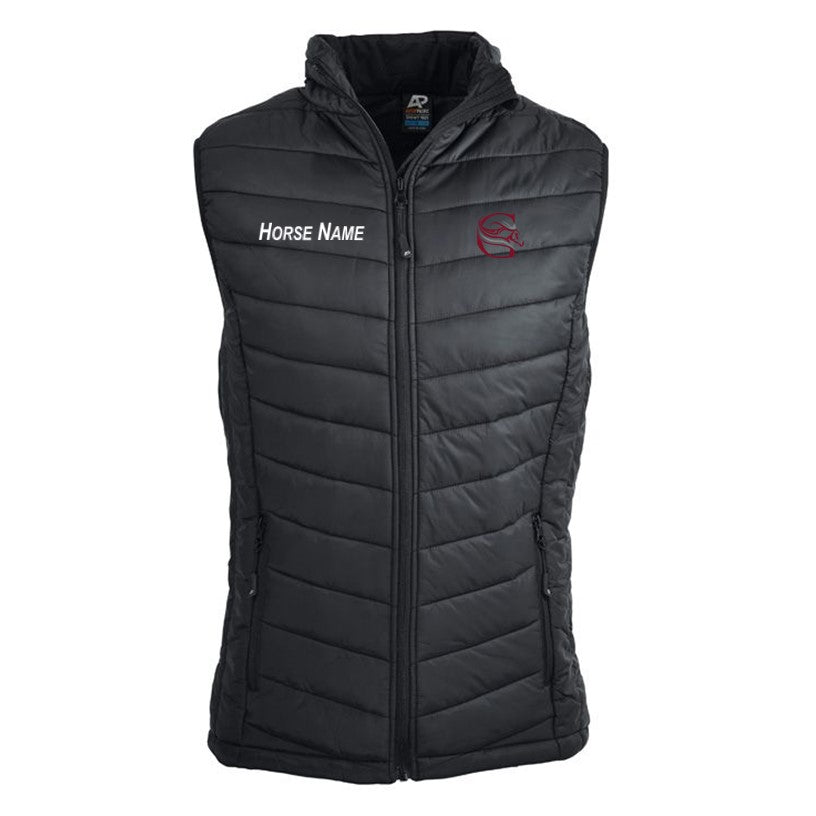 A puffer vest with your racehorse’s name on it? It’s enough to make you feel all warm inside.