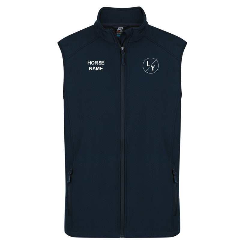 Turn up the heat with your horse’s name embroidered across this soft shell vest.